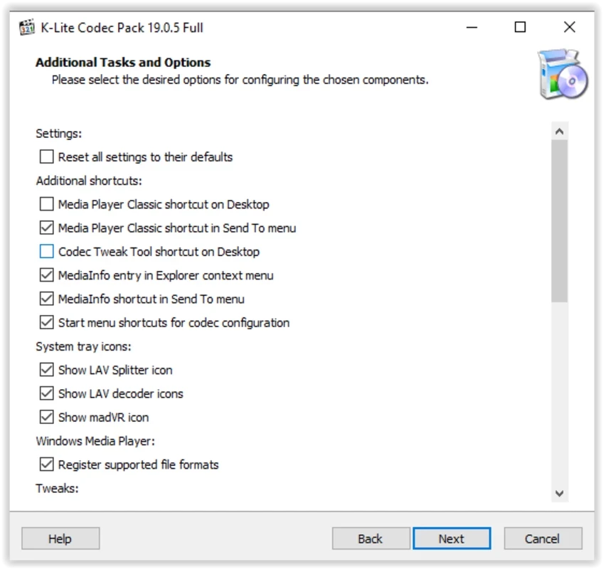该软件包含一套强大的工具包,可增强您的音频/视频播放体验,例如 Media Player Classic Home Cinema (MPC-HC)。它为媒体播放器提供了强大的功能。此外,Codec Tweak 工具允许您对应用程序进行配置。