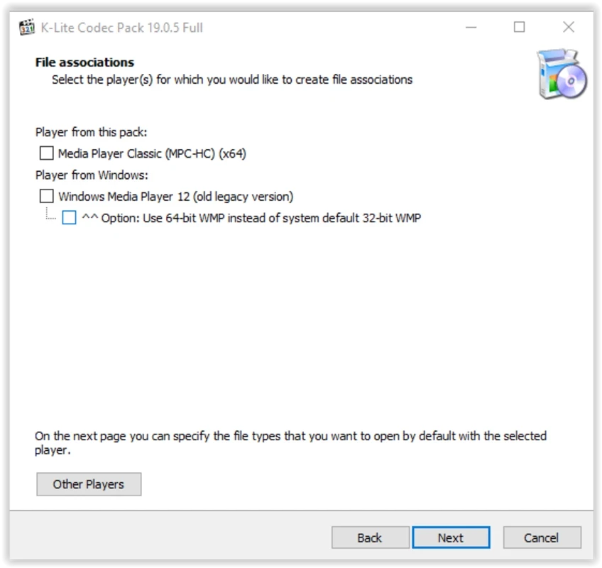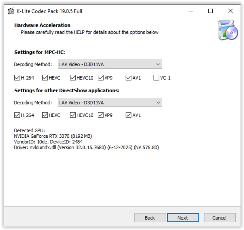 这是一个包含所有必要 DirectShow 过滤器的精简版软件包,不包含播放器。不过,您可以将已安装的 DirectShow 播放器与此软件包一起使用。Windows 10/11 系统自带最新版本的 Windows Media Player,但它与 ODEC 软件包不兼容,因为它不使用 DirectShow。